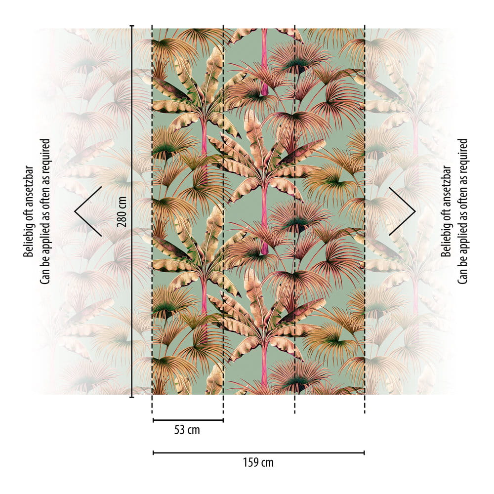 Jedna rolka o szerokości 53 cm i długości 8,8 m tworzy mural o wymiarach 159 x 280 cm.
