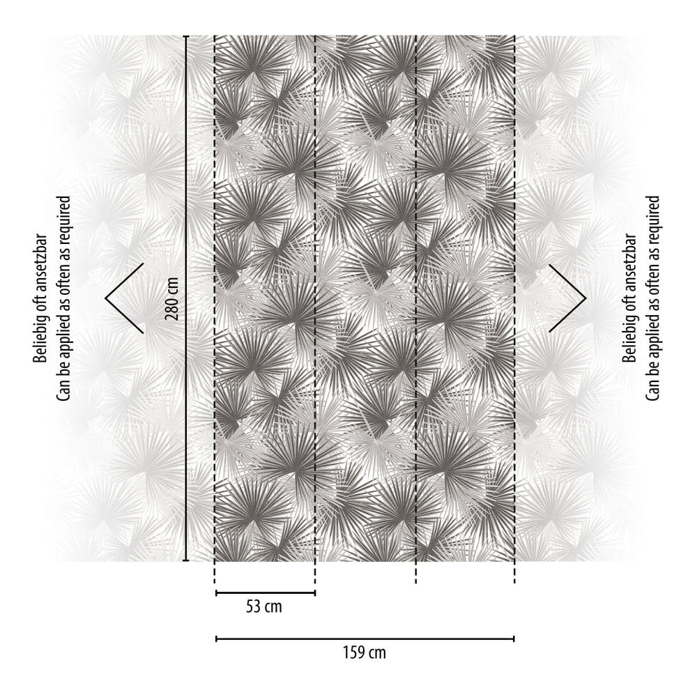 Jedna rolka o szerokości 53 cm i długości 8,8 m tworzy mural o wymiarach 159 x 280 cm.