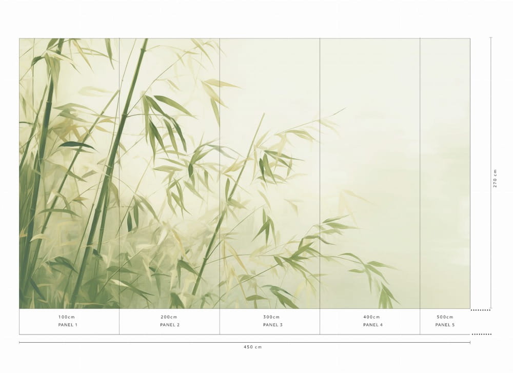 Rozmiar: 450 x 270 cm Mural składa się z 5 paneli o szerokości 100 cm Rodzaj Podłoża winyl na flizelinie 220g