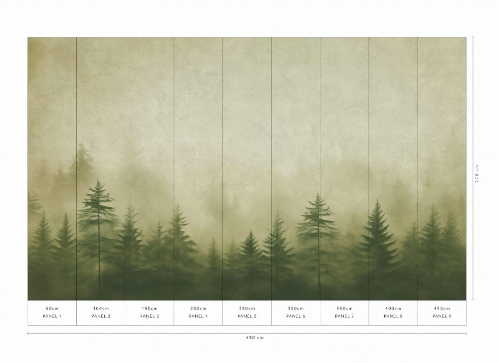Rozmiar: 450 x 270 cm Mural składa się z 9 paneli o szerokości 50 cm Rodzaj Podłoża winyl na flizelinie 220g