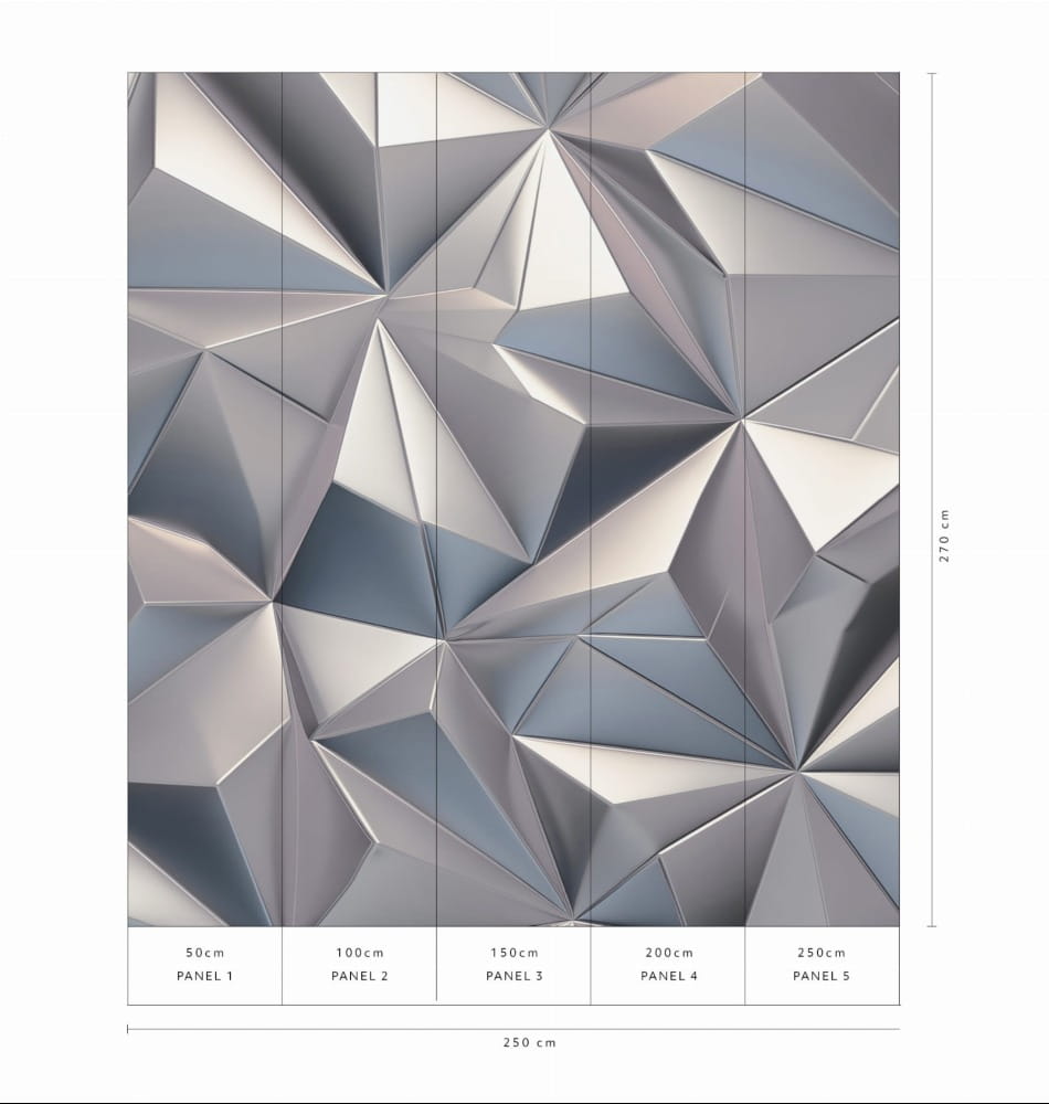 Rozmiar: 250 x 270 cm Mural składa się z 5 paneli o szerokości 50 cm Rodzaj Podłoża metaliczny 220g (srebrny)