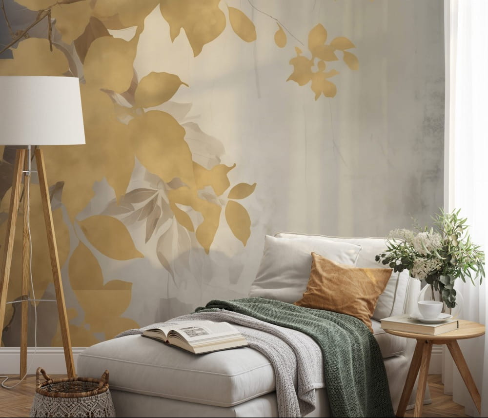 Rozmiar: 200 x 270 cm Mural składa się z 4 paneli o szerokości 50 cm Rodzaj Podłoża metaliczny 220g (złoty)