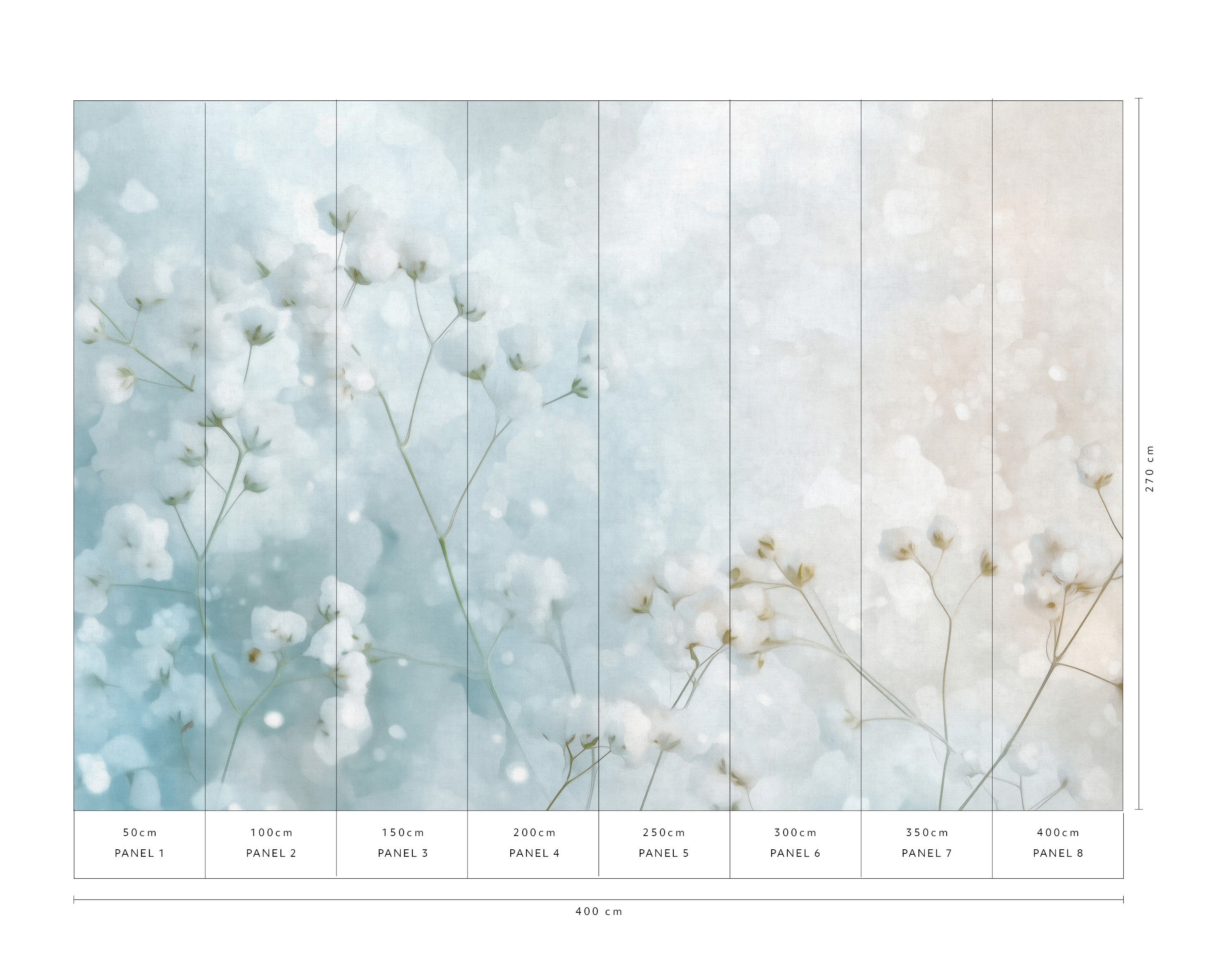 | Ilość elementów Fototapety | 8 pasów, każdy o szerokości 50 cm |