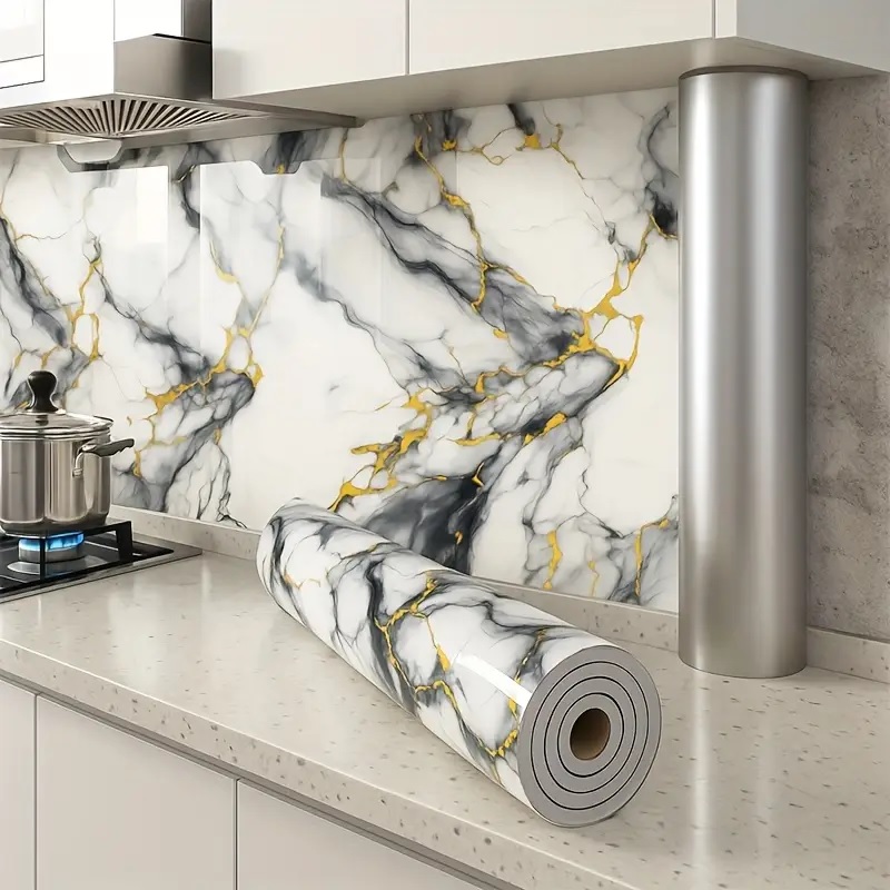 Panele dekoracyjne samoprzylepne w rolce 280 x 60 cm idealnie imitują wzory naturalnych marmurów i trawertynów. Nowoczesne i bardzo modne oraz praktyczne rozwiązanie dekoracji wnętrz. Efekt głębi wzoru struktury mineralnej, możliwość precyzyjnego łączenia rolek na styk, sprawia że udekorowana powierzchnia realistycznie odzwierciedla naturalny kamień i marmury. Bogata kolorystyka i mnogość wzorów zaspokoi najbardziej wymagające gusta. Rolki doskonale sprawdzą się w kuchni, łazience, salonie, przedpokoju lub garażu, a nawet w domku letniskowym, kryjąc powierzchnię od podłogi do sufitu bez zbędnych fug.