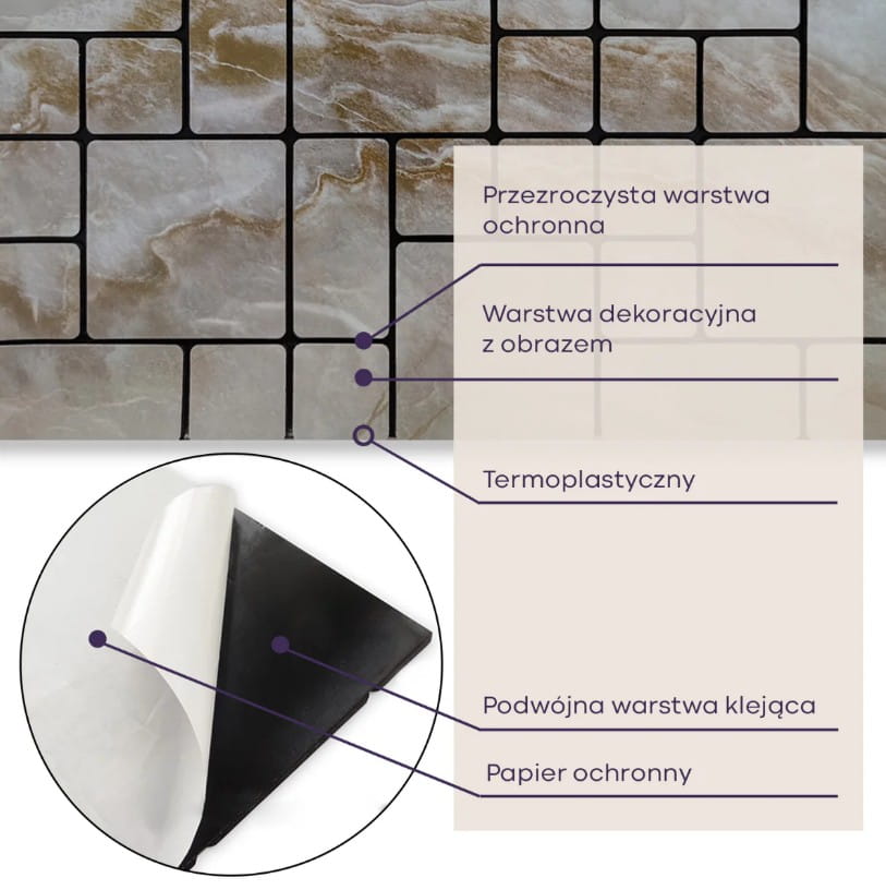 Usuń folię ochronną z tylnej strony płytki samoprzylepnej, aby odsłonić powierzchnię klejącą.