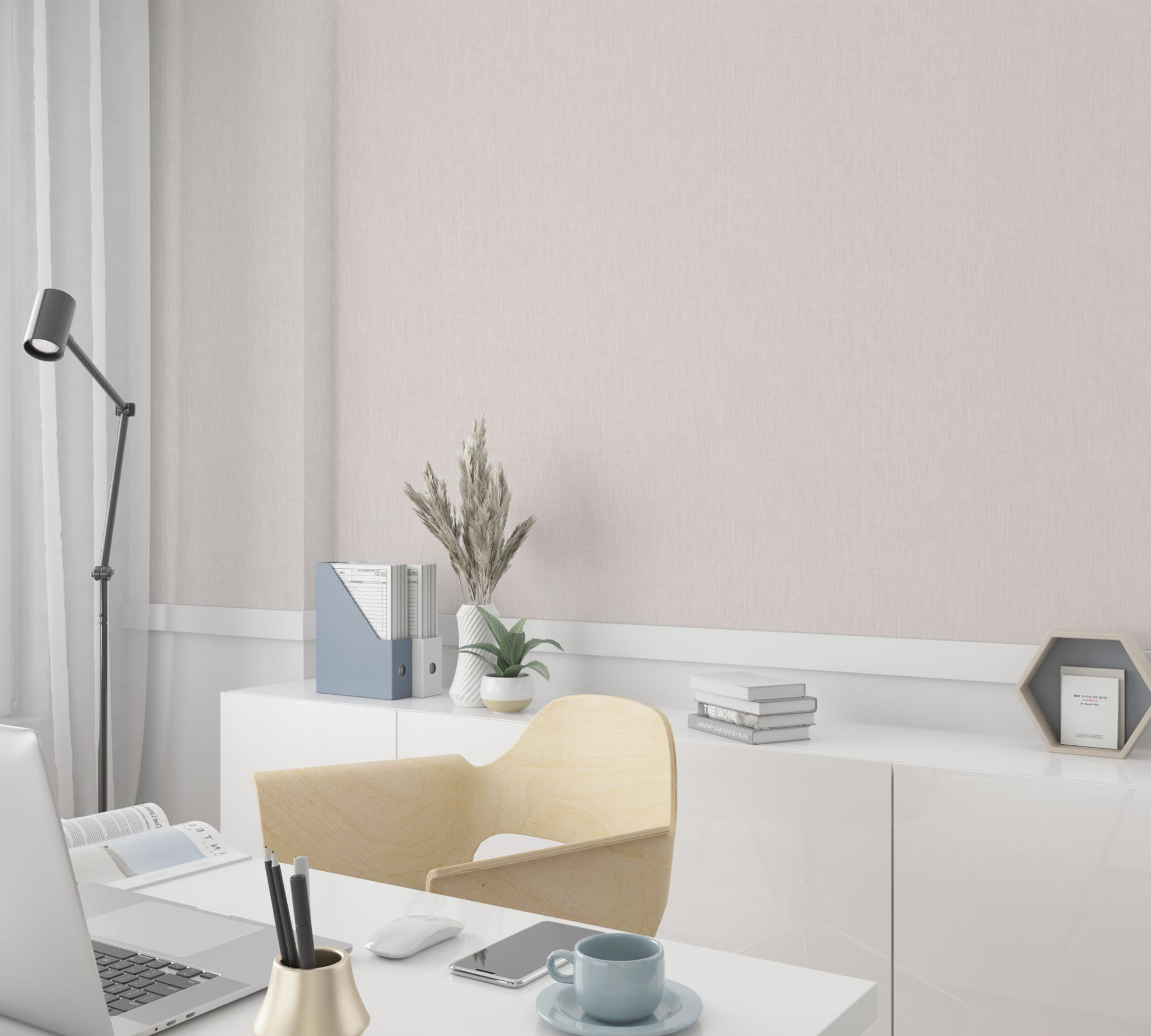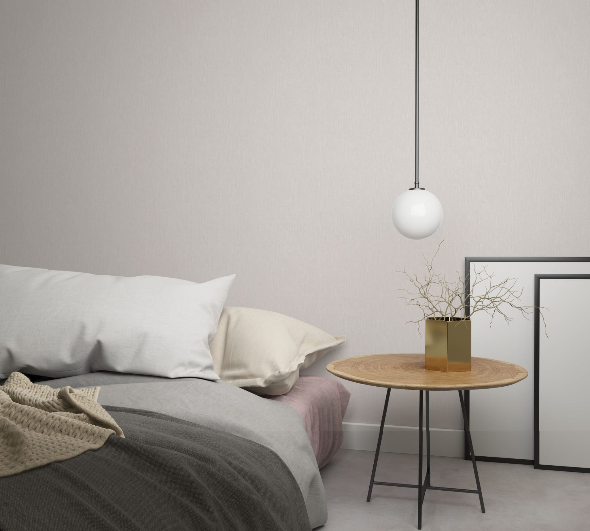Powierzchnia tapety jest matowa a kolorystyka zachowana w odcieniach - jasnego popielatego i kremowego. Efekt dwukolorowego melanżu na strukturze, tworzą lekko cieniowane, pionowe smugi. Charakteryzuje się wysoką zmywalnością i odpornością na uszkodzenia. Neutralna i spokojna kolorystyka może zdobić duże powierzchnie jak i również świetnie się sprawdzi w roli tła przy tworzeniu kompozycji z wzorzystą tapetą.