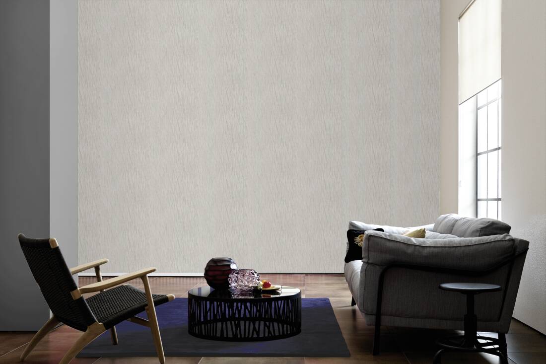 Struktura tapety jest twarda i lekko chropowata z wyczuwalną fakturą pionowego prążka. Wzór kresek jest wklęsły i idealnie gładki, posiada metaliczny, srebrny połysk. Tło tapety posiada matowe wykończenie i jest w odcieniach popielatego.