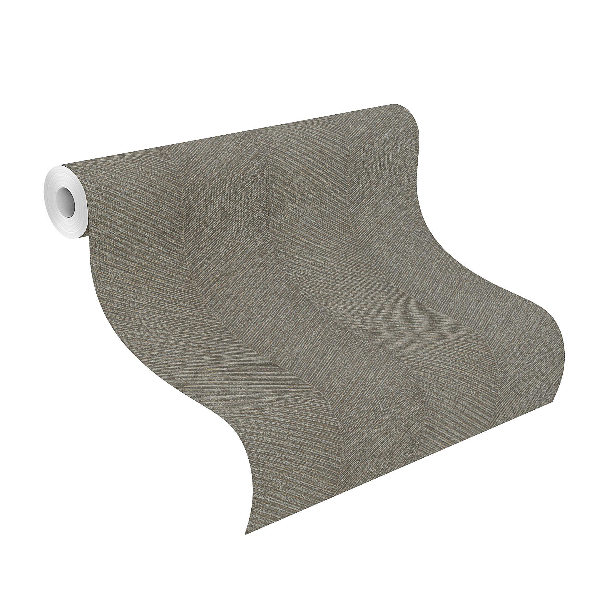 Tapeta ścienna z klasycznym wzorem jodełki, przedstawionej w formie szerokich, pionowych pasów. Kluczowa jest neutralna kolorystyka tapety, łącząca ciemną, szarą zieleń z jasną szarością i akcentami delikatnie metalizowanego złota. Kolory subtelnie przenikają się ze sobą, co tworzy stylowy efekt tekstury i głębi a metaliczny połysk złotych elementów dodaje całości wyszukanego stylu. Delikatnie tłoczona struktura tapety imituje tkaninę o delikatnym, prążkowanym splocie. Tapeta w jodełkę, znana ze swej uniwersalności świetnie odnajdzie się w różnych stylach wnętrzarskich. Doskonale pasuje, zarówno do nowoczesnych i minimalistycznych aranżacji, jak i bardziej klasycznych wnętrz. Gwarantuje przytulny i elegancki styl wnętrza. Tapeta z powodzeniem sprawdzi się jako samodzielna dekoracja w całym pomieszczeniu, tworząc delikatne tło dla mebli i dodatków. Może też tworzyć modne zestawienie z innymi tapetami z kolekcji, na przykład tymi, które prezentujemy poniżej. Prezentowana tapeta jest tapetą flizelinową, zmywalną w bardzo dobrym stopniu, dzięki czemu łatwą do utrzymania w czystości. Produkt pochodzi z ekskluzywnej kolekcji „Amara”, niemieckiego producenta Rasch.