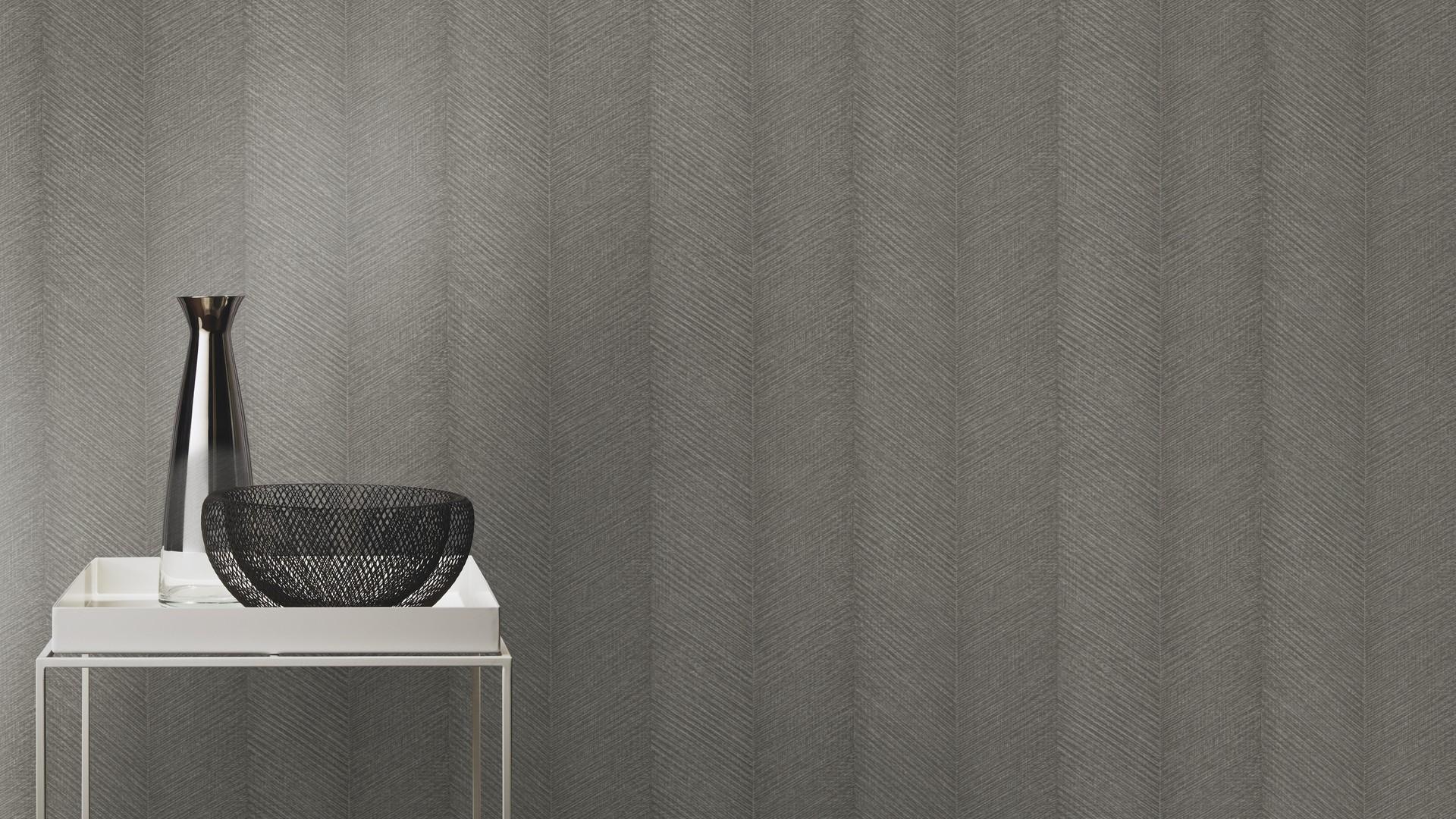 Tapeta ścienna z klasycznym wzorem jodełki, przedstawionej w formie szerokich, pionowych pasów. Kluczowa jest neutralna kolorystyka tapety, łącząca ciemny antracyt z szarym brązem i złotem o delikatnie błyszczącym, metalicznym wykończeniu. Kolory subtelnie przenikają się ze sobą, co tworzy stylowy efekt tekstury i głębi a metaliczny połysk koloru złotego dodaje całości wyszukanego stylu. Delikatnie tłoczona struktura tapety imituje tkaninę o delikatnym, prążkowanym splocie. Tapeta w jodełkę, znana ze swej uniwersalności świetnie odnajdzie się w różnych stylach wnętrzarskich. Doskonale pasuje, zarówno do nowoczesnych i minimalistycznych aranżacji, jak i bardziej klasycznych wnętrz. Gwarantuje przytulny i elegancki styl salonu, jadalni, sypialni, przedpokoju, czy też biura. Ze względu na ciemną kolorystykę, tapeta świetnie sprawdzi się w postaci akcentu, na przykład jako dekoracja na jednej ścianie, tworząc stylowe zestawienie z innymi tapetami z kolekcji, na przykład tymi, prezentowanymi poniżej. Prezentowana tapeta jest tapetą flizelinową, zmywalną w bardzo dobrym stopniu, dzięki czemu łatwą do utrzymania w czystości. Produkt pochodzi z ekskluzywnej kolekcji „Amara”, niemieckiego producenta Rasch.