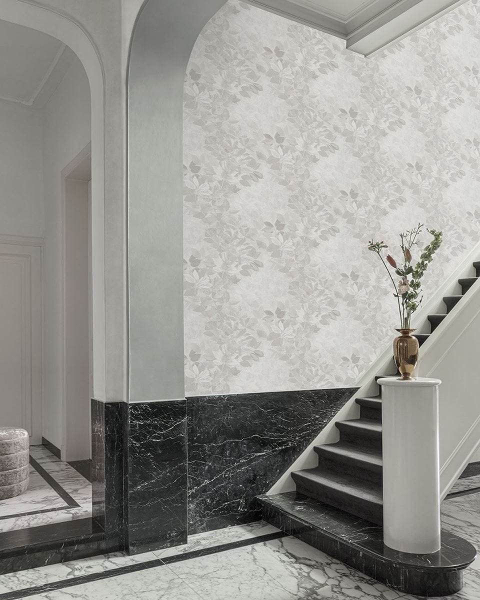 Ekskluzywna tapeta ścienna z kolekcji „Time 2”, producenta Grandeco. Nowoczesna tapeta o strukturze surowego tynku z subtelnym, liściastym deseniem. Kompozycja utrzymana w delikatnych odcieniach szarości, szaro-beżu i szarawej bieli. Struktura tapety jest delikatnie, niejednolicie tłoczona, szorstka w dotyku a wykończenie matowe. Dekoracja, która podkreśli naturalny i przytulny styl salonu, jadalni, sypialni, czy też przedpokoju. Tapeta doskonale sprawdzi się jako dekoracja jednej ściany, tworząc modne zestawienie z tapetami, które prezentujemy poniżej. Tapeta winylowa na podłożu flizelinowym, odporna na szorowanie.