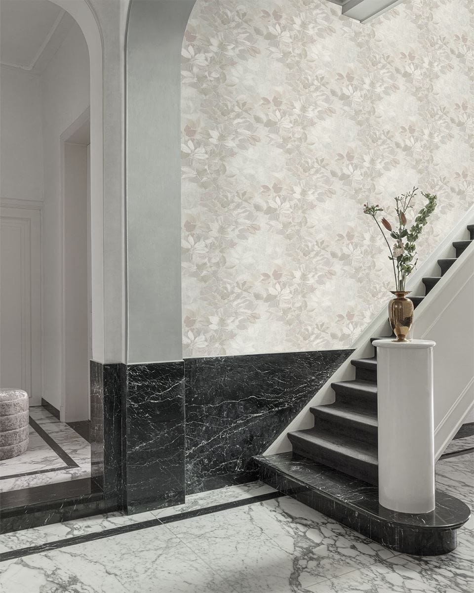 Ekskluzywna tapeta ścienna z kolekcji „Time 2”, producenta Grandeco. Nowoczesna tapeta o strukturze surowego tynku z subtelnym, liściastym deseniem. Kompozycja utrzymana w delikatnych odcieniach szarości, zestawionych z brązem i beżem oraz szarawą bielą. Struktura tapety jest delikatnie, niejednolicie tłoczona, szorstka w dotyku a wykończenie matowe. Dekoracja, która podkreśli naturalny i przytulny styl salonu, jadalni, sypialni, czy też przedpokoju. Tapeta doskonale sprawdzi się jako dekoracja jednej ściany, tworząc modne zestawienie z tapetami, które prezentujemy poniżej. Tapeta winylowa na podłożu flizelinowym, odporna na szorowanie.