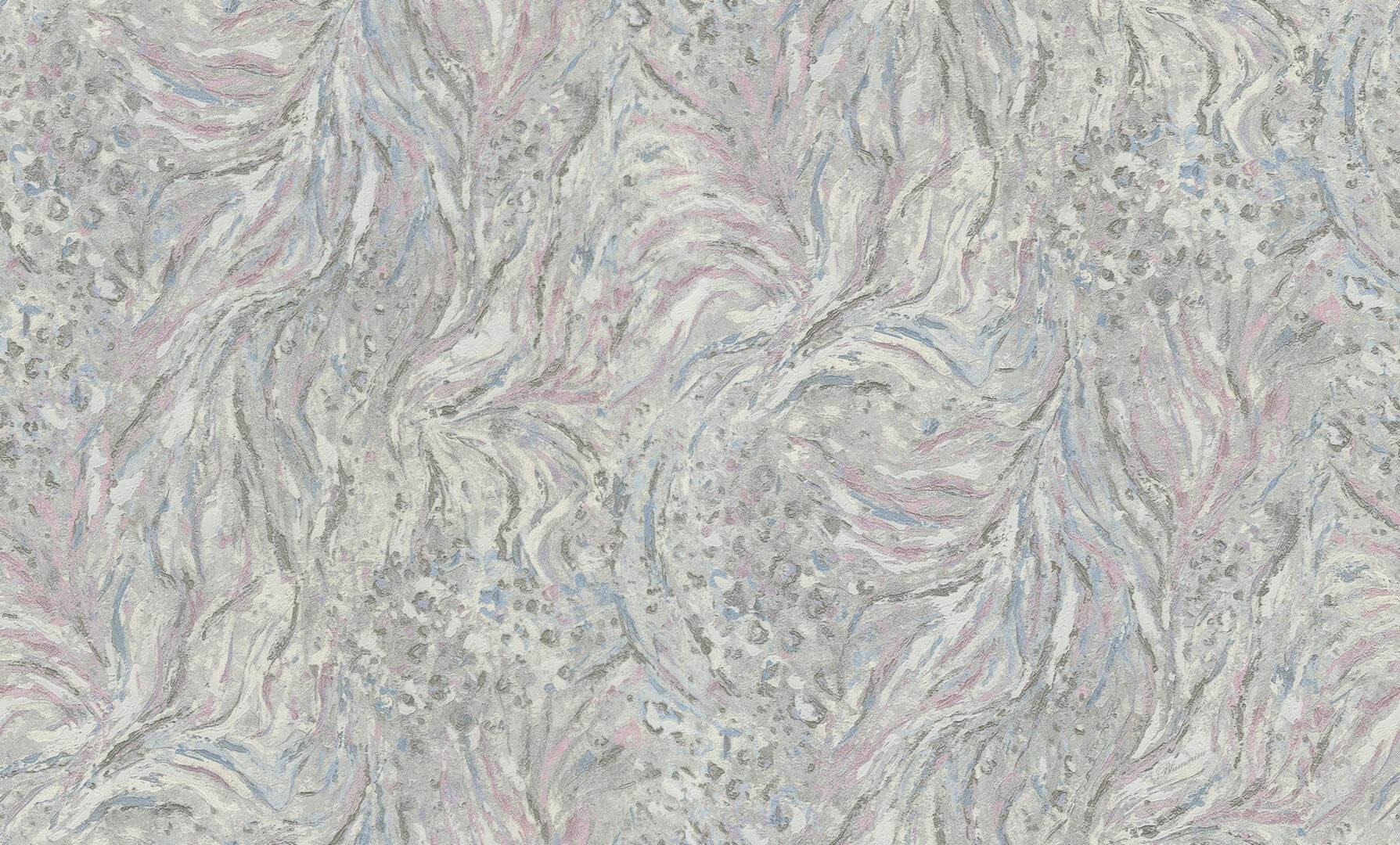 Ekskluzywna tapeta ścienna z kolekcji „Blumarine Home Collection N.5”, włoskiego producenta Emiliana Parati. Wielobarwna tapeta o strukturze tkaniny z wytłoczonym deseniem przywołującym na myśl kamienną powierzchnię. Kolorem dominującym jest delikatna szarość, uzupełniona o róż i odcień niebieskiego. Elementy wzoru połyskują srebrnym brokatem, ciemnoszare mają również metaliczny połysk. Tapeta pięknie współgra z mocnym światłem, tworząc wyjątkową atmosferę w pomieszczeniu. Pięknie udekoruje salon, jadalnię, sypialnię, przedpokój, pokój młodzieżowy a nawet i dziecięcy, nadając wnętrzom przytulności i eleganckiego charakteru. Może stanowić samodzielną dekorację wszystkich czterech ścian, lub tworzyć modne zestawienie z innymi tapetami z kolekcji. Tapeta jest dostępna w wielu wersjach kolorystycznych. Certyfikowana tapeta winylowa na podłożu flizelinowym, odporna na szorowanie, dzięki czemu utrzymanie jej w czystości nie będzie stanowiło problemu.