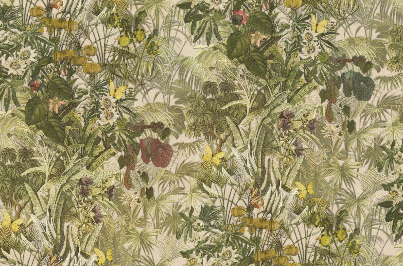 Ekskluzywna tapeta ścienna z kolekcji „Blumarine Home Collection N.5”, włoskiego producenta Emiliana Parati. Tapeta o strukturze tkaniny z motywem botanicznym, który do złudzenia naśladuje reliefowy haft. Tropikalny wzór zachwyca przeróżnymi formami liści, kwiatów oraz motylami. Dzięki subtelnej, srebrzystej poświacie tapeta pięknie odbija światło a wzór delikatnie się mieni sprawiając wrażenie trójwymiarowego. Barwna kompozycja składa się z odcieni zieleni, beżu, kremu, brązu, żółci, bordo i turkusu, które wypełniają jasne, kremowe tło. Tapeta doskonale sprawdzi się jako dekoracja jednej ściany, tworząc stylowe zestawienie z jednokolorową tapetą o numerze: BM29052. Pięknie udekoruje nowoczesny salon, jadalnię, sypialnię, czy też pokój młodzieżowy, nadając wnętrzu wyrazistości i wyjątkowo przytulnego charakteru. Certyfikowana tapeta winylowa na podłożu flizelinowym, odporna na szorowanie, dzięki czemu utrzymanie jej w czystości nie będzie stanowiło problemu.