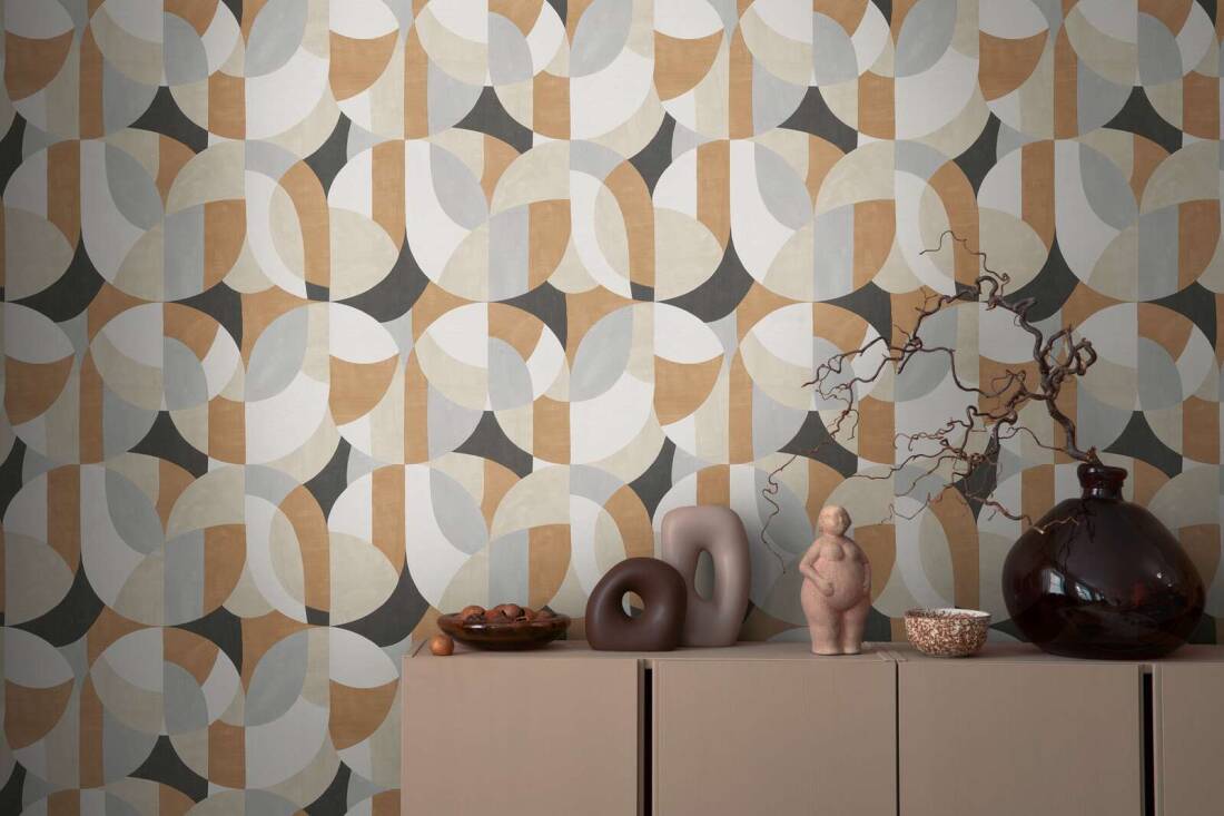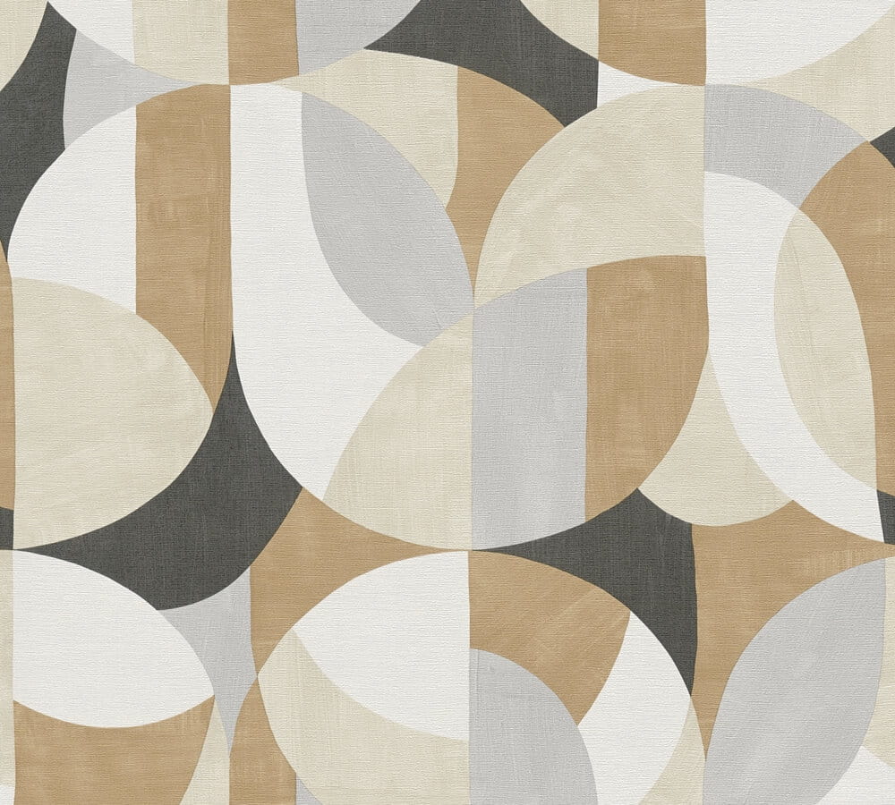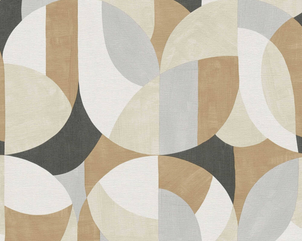 Prezentowana tapeta ścienna z kolekcji "French Affair" od A.S. Creation wyróżnia się geometrycznym wzorem inspirowany stylem retro. Motyw ten składa się z zaokrąglonych kształtów, półokręgów i łuków, które harmonijnie się przenikają, tworząc dynamiczną, ale jednocześnie uporządkowaną kompozycję. Wzór jest powtarzalny, a jego układ sprawia wrażenie trójwymiarowości i głębi, co dodatkowo podkreśla wyrafinowany charakter tapety. Kolorystyka kompozycji jest jest spokojna i neutralna, oparta na ciepłym beżu i brązie, bieli, czerni i szarości. Struktura tapety imituje płócienny materiał o szorstkiej powierzchni i matowym wykończeniu.
