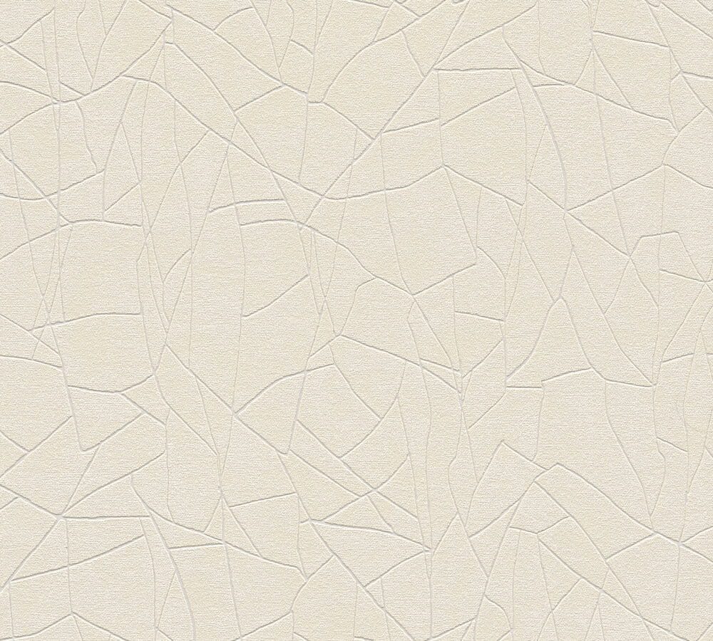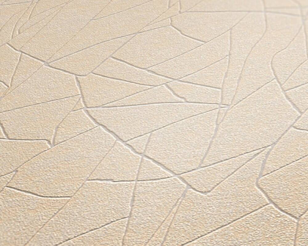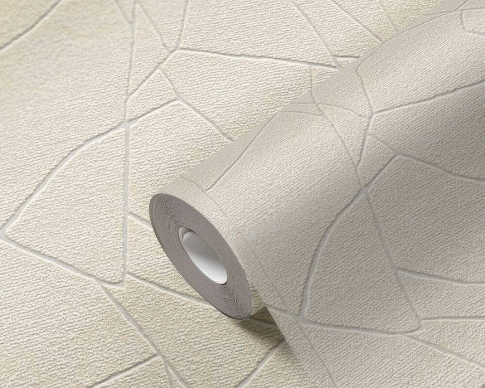 Tapeta ścienna z kolekcji "French Affair" marki A.S. Création to doskonały wybór dla osób, które lubią minimalistyczne i eleganckie dekoracje ścienne. Jej delikatne, beżowo-kremowe tło zostało ozdobione subtelnie metalizowanym, białym wzorem geometrycznym. Wzór delikatnych, przecinających się linii tworzy wrażenie harmonii i przestrzenności, jednocześnie wprowadza luksusowy akcent dzięki lekko połyskującym, srebrzystym detalom. Efekt ten sprawia, że tapeta odbija mocniejsze, punktowe światło światło, tworząc głębię i piękne refleksy na ścianie. Powierzchnia tapety jest miękka i gąbczasta, nieco szorstka w dotyku, z wyczuwalnie wklęsłym wzorem.