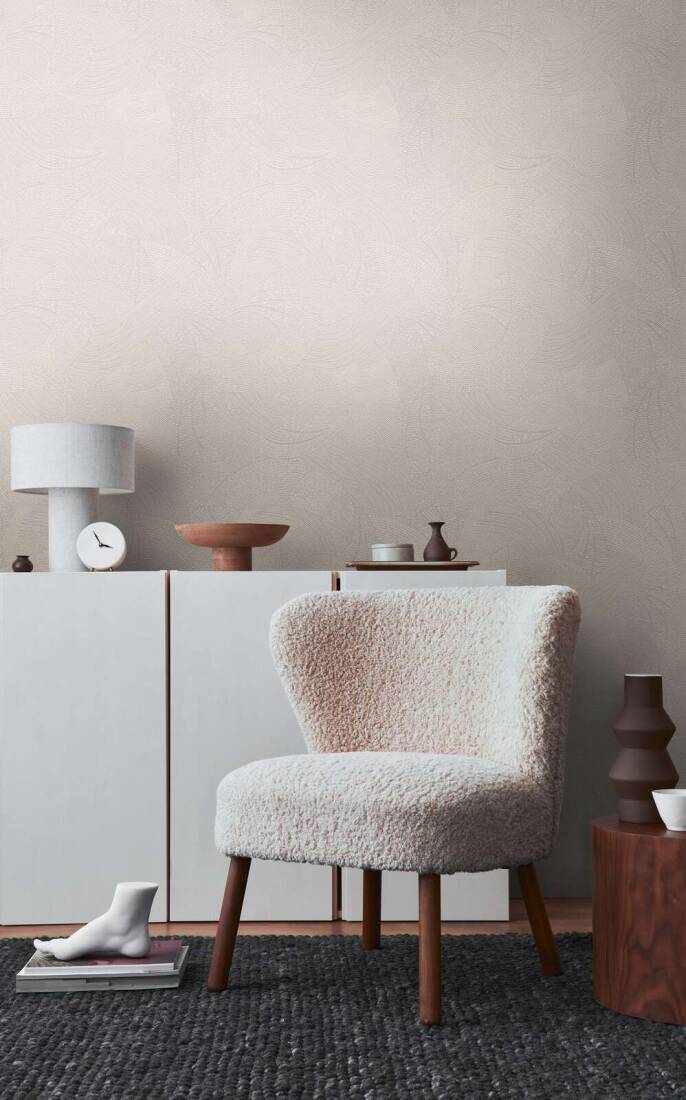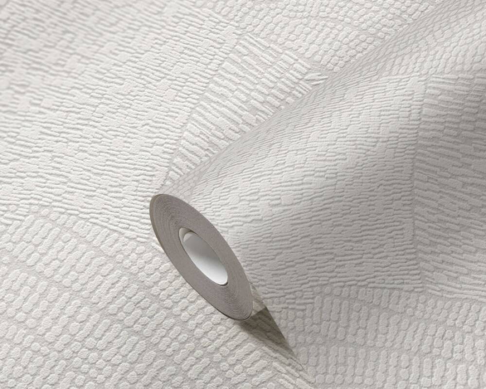 Faktura powierzchni tapety jest miękka, gąbczasta, nieco szorstka w dotyku. Wykończenie tapety na pierwszy rzut oka wydaje się być matowe, jednak wzór bardzo delikatnie odbija mocniejsze, punktowe światło, co tworzy subtelny efekt głębi.