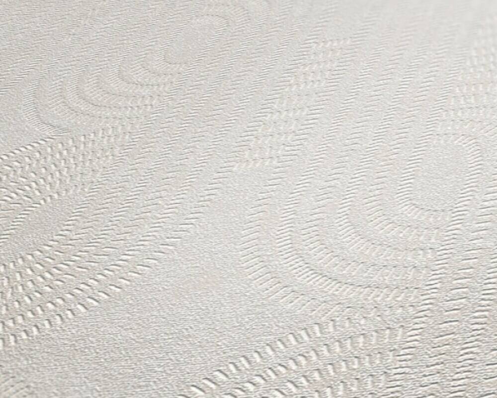 Tapeta z kolekcji "French Affair" od A.S. Creation to elegancka dekoracja ścienna, która przyciąga uwagę subtelnym wzorem, wzbogaconym o delikatny, metaliczny połysk. Motyw tworzą delikatne, płynnie przenikające się linie, utworzone z drobniutkich, połyskujących prążków. Kompozycja jest utrzymana w bardzo delikatnym, bladym, wręcz wpadającym w biel odcieniu szarości. Wzór subtelnie odbija światło, dzięki czemu odznacza się od matowego tła. Połysk tworzy wrażenie głębi i zmieniającego się efektu w zależności od oświetlenia i kąta padania światła. Dzięki temu tapeta wydaje się dynamiczna, ale nadal pozostaje subtelna i nieprzytłaczająca.