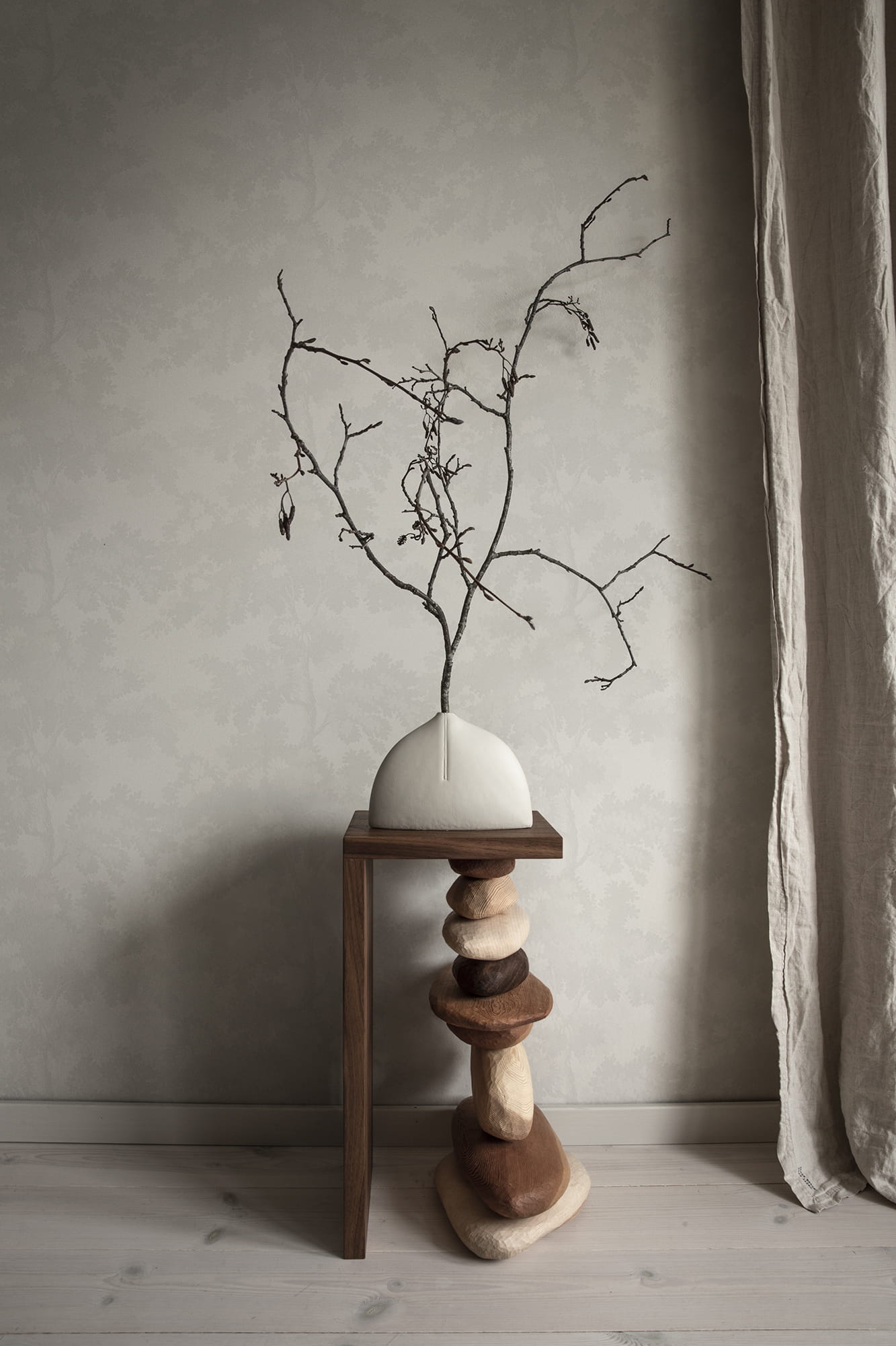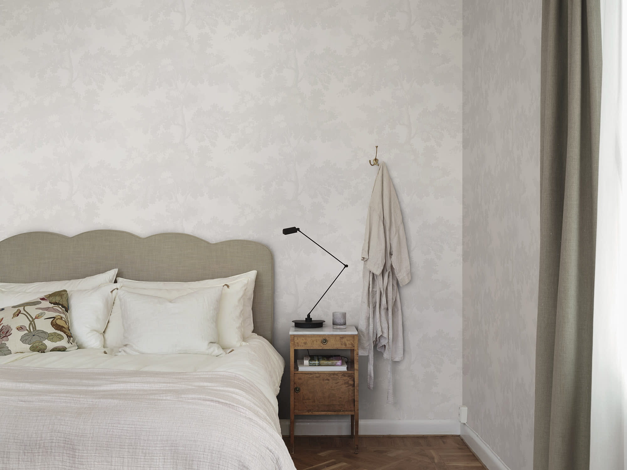 Ekskluzywna tapeta ścienna z kolekcji „Tidlosa”, producenta Sandberg, to wyjątkowa okleina ścienna, która przyciąga wzrok motywem botanicznym, który w niepowtarzalny sposób odmieni styl wnętrza. Leśny deseń, przedstawiający wierzchołki drzew to idealny przepis na stworzenie klimatycznej aranżacji o odprężającym i przytulnym charakterze. Naturalny styl tapety podkreśla spokojna kolorystyka, która łączy blade, mocno rozbielone szarości z białym kolorem tła. Wykończenie tapety jest matowe a struktura niemal idealnie gładka w dotyku. Pod palcami można wyczuć miejscami kontury pni drzew. Projekt „Raphael” producenta Sandberg jest jednym z najpopularniejszych. Inspiracją do jego powstania były antyczne gobeliny a także nowojorski Central Park, gdzie zieleń otoczona szklano-betonowymi drapaczami pięknie kontrastuje z tętniącym życiem miastem. Tapeta sprawdzi się jako samodzielna dekoracja ścian, może też stworzyć stylowe zestawienie z innymi tapetami z kolekcji, co nada wnętrzu jeszcze bardziej wyszukanego stylu. Tapeta flizelinowa, charakteryzująca się dobrą odpornością na zmywanie, dzięki czemu jej powierzchnię można bardzo delikatnie przecierać ściereczką.