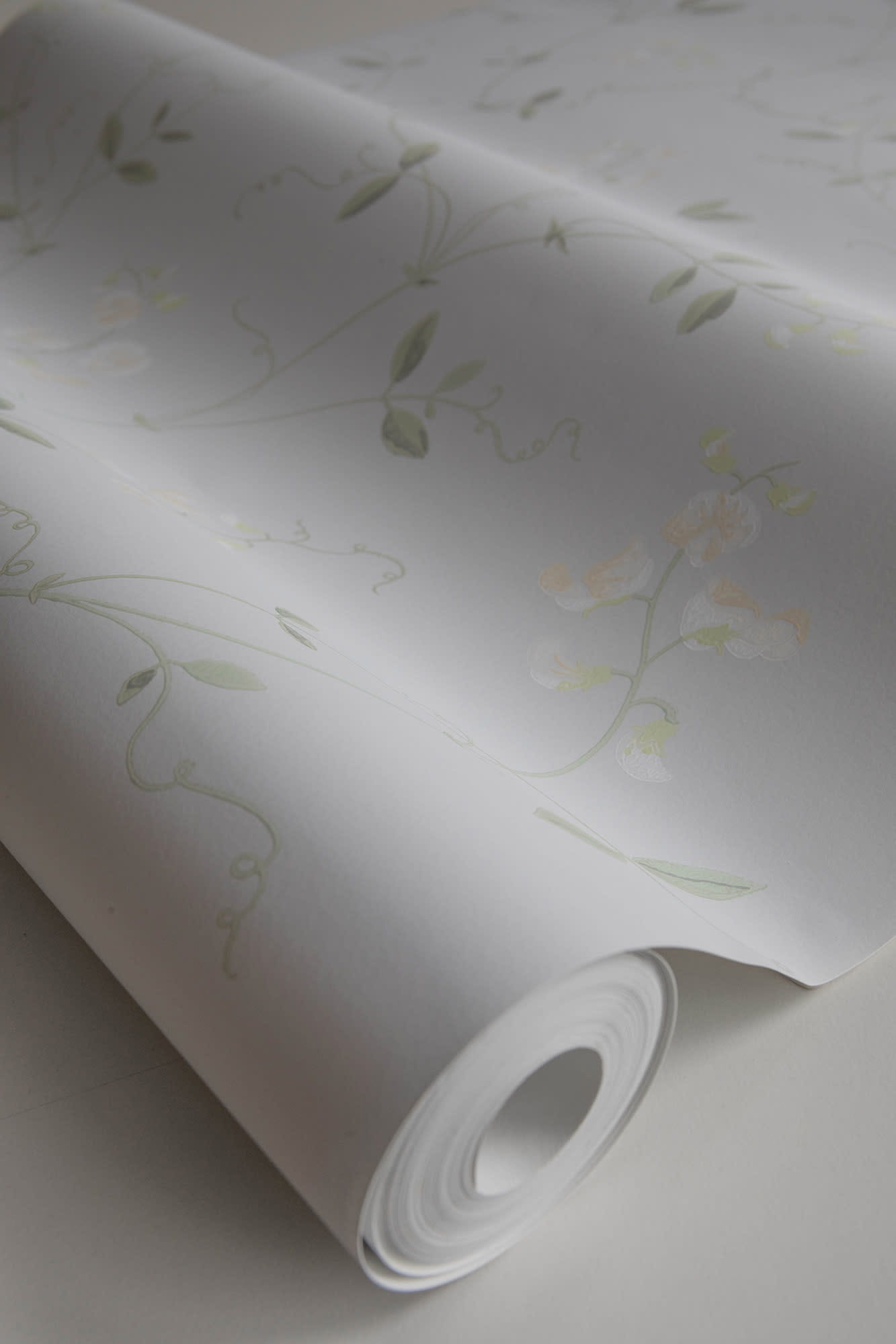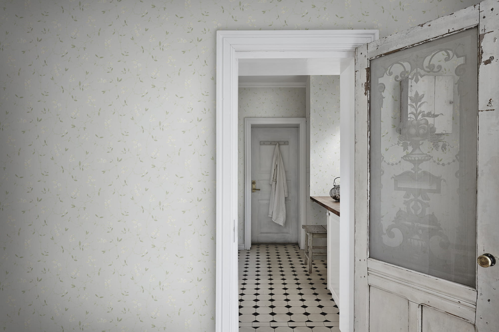 Ekskluzywna tapeta ścienna z kolekcji "Tidlosa", producenta oklein ściennych Sandberg. Projekt "Sanna", którego autorką jest Sissa Sundling, przyciąga wzrok subtelnym, jakby malowanym farbami kredowymi motywem drobnych pnączy, ozdobionych delikatnymi kwiatami groszku, które z wdziękiem unoszą się po ścianie. Świeży i lekki wyraz kompozycji podkreśla pastelowa kolorystyka, która łączy blady, szarawy błękit tła z tonacjami zieleni, bieli i żółci. Wykończenie tapety jest matowe a struktura powierzchni niemal idelalnie gładka, pod palcami można wyczuć lekko wytłoczone elementy wzoru. Idealny przepis na stworzenie efektownej aranżacji salonu, jadalni, sypialni, przedpokoju, biura, pokoju młodzieżowego a nawet pokoju dziecięcego. Subtelny motyw będzie stylowym dopełnieniem zarówno klasycznej, jak i nowoczesnej aranżacji. Pięknie będzie prezentować się jako samodzielna dekoracja całego pomieszczenia, jak i w stylowym zestawieniu z innymi tapetami z kolekcji. Tapeta flizelinowa, charakteryzująca się dobrą odpornością na zmywanie, dzięki czemu jej powierzchnię można bardzo delikatnie przecierać ściereczką.