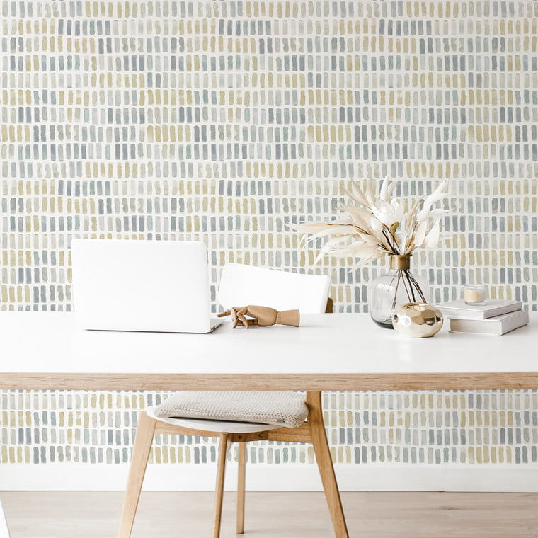 Tapeta z malowanymi akwarelą, prostokątnymi pociągnięciami pędzla układającymi się w regularny wzór. Kompozycja utrzymana w spokojnych odcieniach szarości, szaro-beżu i żółtej ochry, na białym tle. Struktura tapety jest gładka a wykończenie matowe. Dekoracja o przytulnym i modnym charakterze, która idealnie skomponuje się z nowoczesnym wystrojem wnętrza. Doskonale sprawdzi się przy aranżacji salonu, jadalni, sypialni, przedpokoju, biura, czy też pokoju młodzieżowego a nawet dziecięcego. Tapeta pochodzi z ekskluzywnej kolekcji "Scott Living II By Drew & Jonathan", producenta Fine Decor. Projekt jest dostępny w innych wersjach kolorystycznych, które prezentujemy poniżej. Tapeta winylowa na podłożu flizelinowym, zmywalna w dobrym stopniu.