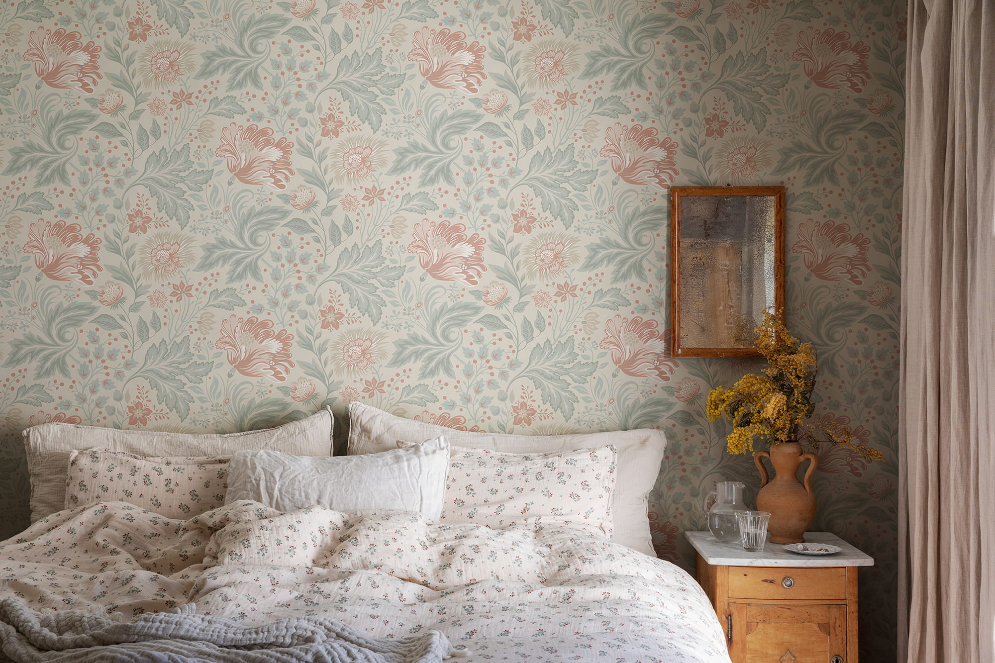 Ekskluzywna tapeta ścienna z kolekcji "Villa Dallarö II", szwedzkiego producenta Sandberg. Projekt "Ava", którego autorką jest Sissa Sundling Nasza ukochana Ava to wzór o dużych kwiatach, bujnych, wspaniałych i eleganckich. To tapeta do wszystkich pomieszczeń, namalowana z myślą o pasji i ładności. Tworzy atmosferę, w której można się zakochać, raz po raz. Kompozycję wyróżnia pastelowa kolorystyka, która podkreśla jej przytulny charakter. Wzór w szarości, beżach i tonacjach beżowo-różowych, z akcentami bieli wypełnia delikatne tło wpadające w krem. Struktura tapety jest idealnie gładka a wykończenie matowe. Tapeta z powodzeniem może być zastosowana jako samodzielna dekoracja wszystkich ścian w pomieszczeniu, może też tworzyć stylowe zestawienie z innymi tapetami z kolekcji, na przykład tymi, które prezentujemy poniżej. Doskonale skomponuje się zarówno z klasycznym, jak i nowoczesnych wystrojem wnętrza, szczególnie pięknie będzie współgrać z rustykalną, wiejską aranżacją. Tapeta o numerze S10179 jest tapetą flizelinową, ekologiczną, zmywalną w dobrym stopniu, dzięki czemu może być bardzo delikatnie przecierana ściereczką.