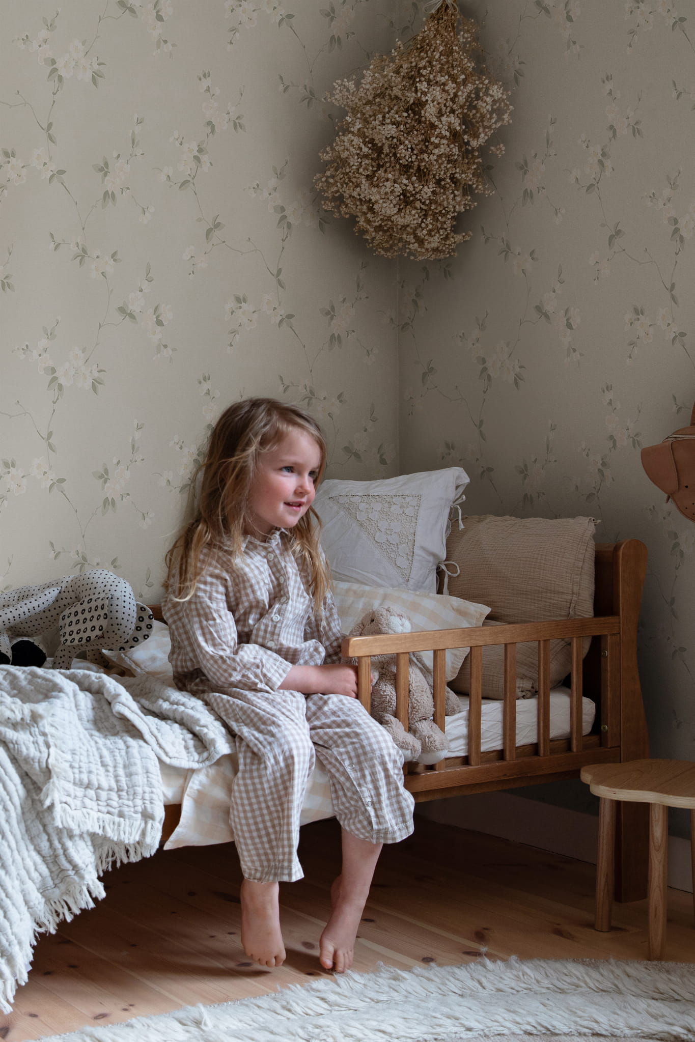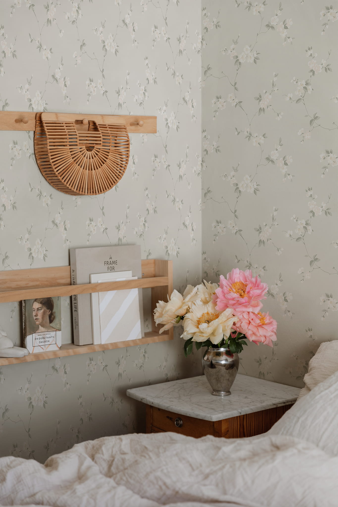 Ekskluzywna tapeta ścienna z kolekcji "Villa Dallarö II", szwedzkiego producenta Sandberg. Projekt "Engla" to delikatny, malowany pędzlem motyw roślinny, przedstawiający kwitnące gałązki jabłoni. Kompozycję charakteryzuje delikatna kolorystyka, dzięki której całość jest lekka i przytulna w odbiorze. Wzór w delikatnych szarościach, ciepłym beżu i bieli jest wkomponowany w blade, piaskowo-beżowe tło. Wykończenie tapety jest matowe a jej struktura niemal idealnie gładka. Pod palcami można nieco wyczuć elementy wzoru, które zostały delikatnie wytłoczone. Idealny przepis na stworzenie aranżacji o ciepłym i odprężającym charakterze. Tapeta świetnie nadaje się zarówno do klasycznych, jak i nowoczesnych wnętrz. Doskonale skomponuje się z wystrojem wnętrza urządzonego w sielskim, rustykalnym stylu. Tapeta z powodzeniem może być zastosowana jako samodzielna dekoracja wszystkich ścian w pomieszczeniu, może też tworzyć stylowe zestawienie z innymi tapetami z kolekcji, na przykład tymi, które prezentujemy poniżej. Tapeta o numerze S10186 jest tapetą flizelinową, ekologiczną, zmywalną w dobrym stopniu, dzięki czemu może być bardzo delikatnie przecierana ściereczką.