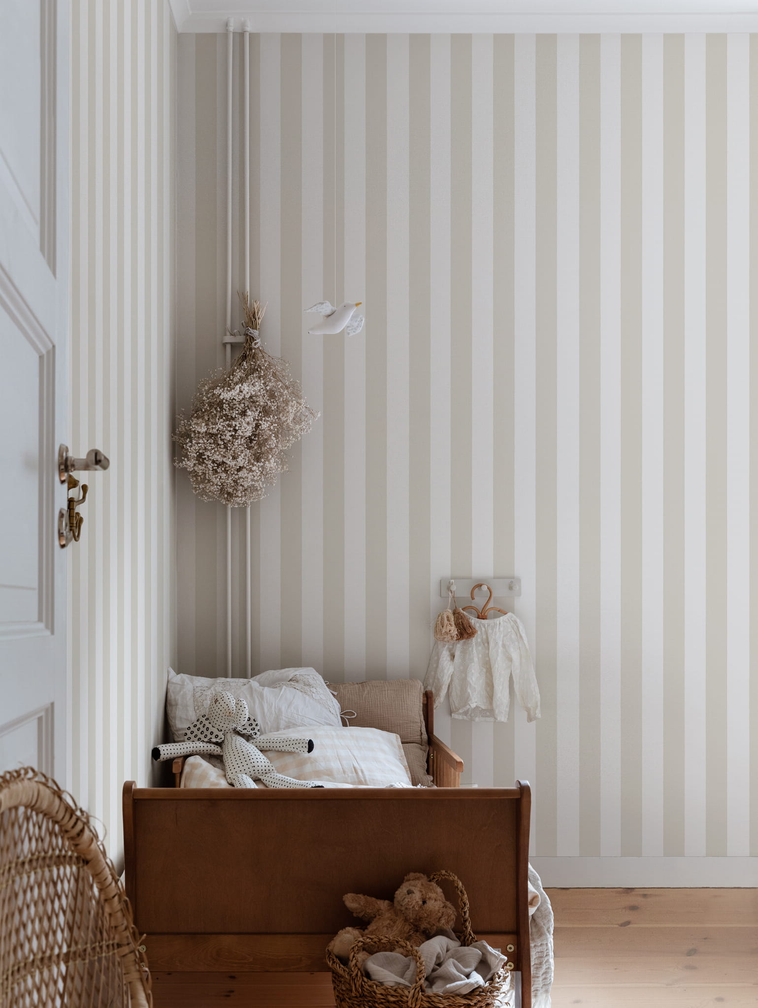 Ekskluzywna tapeta ścienna z kolekcji "Villa Dallarö II", szwedzkiego producenta Sandberg. Projekt "Sam" to klasyczny wzór pasów, współgrający niemal z każdym stylem aranżacyjnym i nadający się do każdego pomieszczenia. Wyróżnia się pastelową kolorystyką, która łączy jasny, lniany beż z bielą. Gwarantuje stylową i elegancką aranżację o modnym i przytulnym charakterze. Struktura tapety jest idealnie gładka a wykończenie matowe. Tapeta z powodzeniem sprawdzi się jako samodzielna dekoracja całego pomieszczenia, jak i w stylowym zestawieniu z innymi tapetami z kolekcji. Tapeta S10198 jest tapetą flizelinową, ekologiczną, zmywalną w dobrym stopniu, dzięki czemu może być bardzo delikatnie przecierana ściereczką.