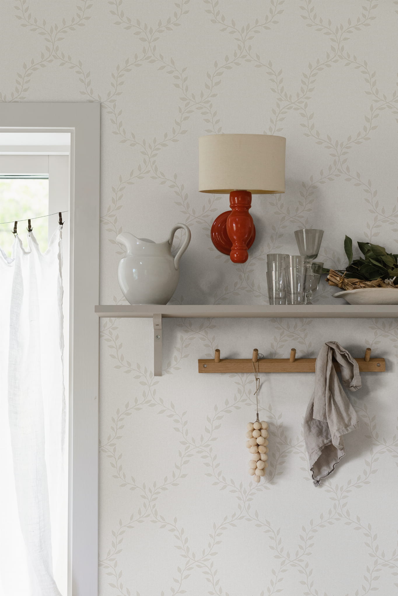 Ekskluzywna tapeta ścienna z kolekcji "Villa Dallarö II", szwedzkiego producenta Sandberg. Projekt "Wilma" to tapeta z delikatnym, roślinnym deseniem, który przywodzi na myśl wieńce laurowe. Wzór jasnoniebieskich liści wypełnia tło w kolorze złamanej bieli. Delikatna kolorystyka kompozycji podkreśla jej lekki i przytulny styl. Struktura tapety jest idealnie gładka a wykończenie matowe. Białe tło z bliska, wyglądem przypomina płócienny materiał co dodatkowo wzmacnia naturalny efekt. Idealny przepis na stworzenie stylowej aranżacji salonu, jadalni, sypialni, przedpokoju, biura, pokoju młodzieżowego a nawet pokoju dziecięcego. Subtelny motyw będzie modnym dopełnieniem zarówno klasycznej, jak i nowoczesnej aranżacji. Idealnie skomponuje się z ciepłym, rustykalnym wystrojem. Pięknie będzie prezentować się jako samodzielna dekoracja całego pomieszczenia, jak i w stylowym zestawieniu z innymi tapetami z kolekcji. Tapeta S10200 jest tapetą flizelinową, ekologiczną, zmywalną w dobrym stopniu, dzięki czemu może być bardzo delikatnie przecierana ściereczką.