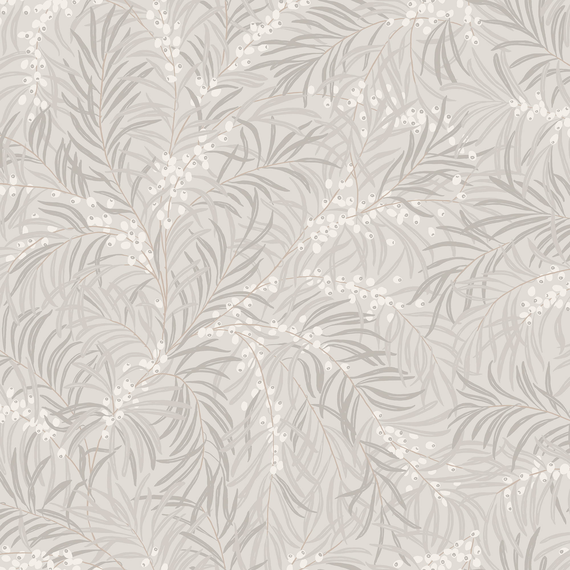Ekskluzywna tapeta ścienna z kolekcji "Villa Dallarö II", szwedzkiego producenta Sandberg. Projekt "Idun", którego autorką jest Karolina Kroon to delikatny, botaniczny nadruk z rokitnikami, wypełnionych kępami owoców, które wręcz rozsypują się po ścianie. Liście tworzą piękne, małe pióropusze, niczym palmy, które nadają pomieszczeniu tropikalny klimat, charakterystyczny dla nordyckiego stylu. Przytulny charakter kompozycji wzmacnia delikatna kolorystyka tapety, która łączy odcienie szarości z bielą i ciepłym brązem. Struktura tapety jest idealnie gładka a wykończenie matowe. Tapeta będzie dobrze współgrać zarówno z nowoczesną, jak i klasyczną aranżacją. Świetnie pasuje do wnętrz rustykalnych i urządzonych w skandynawskim stylu. W wyjątkowy sposób odmieni charakter salonu, jadalni, sypialni, przedpokoju, biura, czy też młodzieżowego a nawet i dziecięcego wnętrza. Może stanowić samodzielną dekorację wszystkich ścian w pomieszczeniu, jak i tworzyć modne zestawienie z innymi tapetami z kolekcji, na przykład tymi, które prezentujemy poniżej. Tapeta o numerze S10207 jest tapetą flizelinową, ekologiczną, zmywalną w dobrym stopniu, dzięki czemu może być bardzo delikatnie przecierana ściereczką.