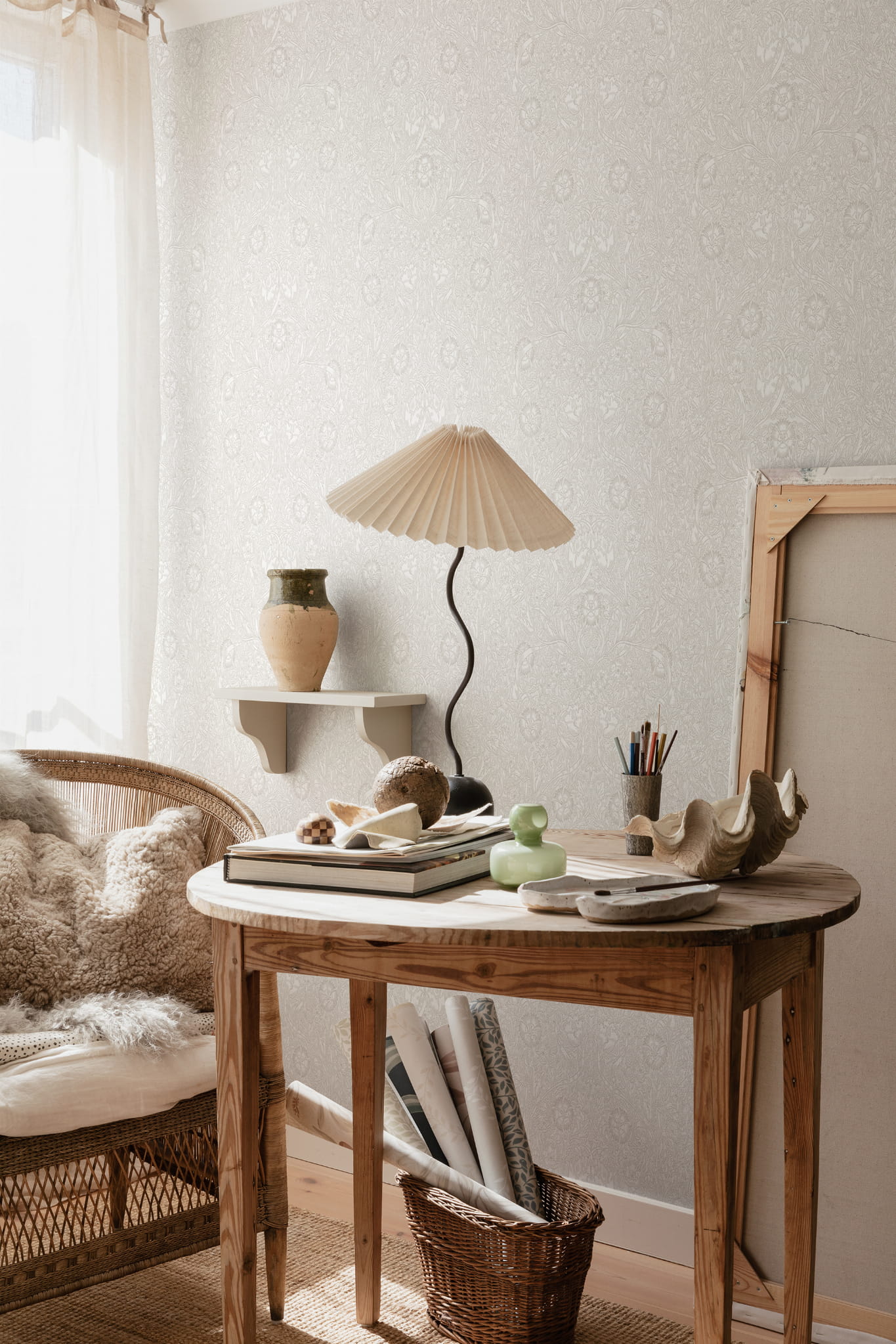 Ekskluzywna tapeta ścienna z kolekcji "Villa Dallarö II", szwedzkiego producenta Sandberg. Tapeta "Ava" będąca projektem Sary Bergqvist to bogata w niuanse, botaniczna kompozycja, utrzymana w pastelowej kolorystyce. Roślinny deseń zadziwia drobnymi szczegółami, które pojawiają się i rosną, im bliżej się przyglądasz. Wzór utrzymany w delikatnym, szarawym beżu wypełnia białe tło. Struktura tapety jest gładka a wykończenie matowe. Idealny przepis na stworzenie przytulnej i klimatycznej aranżacji. Tapeta Świetnie będzie współgrać z rustykalnym ale i też nowoczesnym wystrojem. W wyjątkowy sposób odmieni styl salonu, jadalni, sypialni, przedpokoju, biura, czy też młodzieżowego wnętrza. Z powodzeniem może być zastosowana jako samodzielna dekoracja całego pomieszczenia, jak i tworzyć modne zestawienie z innymi tapetami z kolekcji, na przykład tymi, które prezentujemy poniżej. Tapeta o numerze S10209 jest tapetą flizelinową, ekologiczną, zmywalną w dobrym stopniu, dzięki czemu może być bardzo delikatnie przecierana ściereczką.