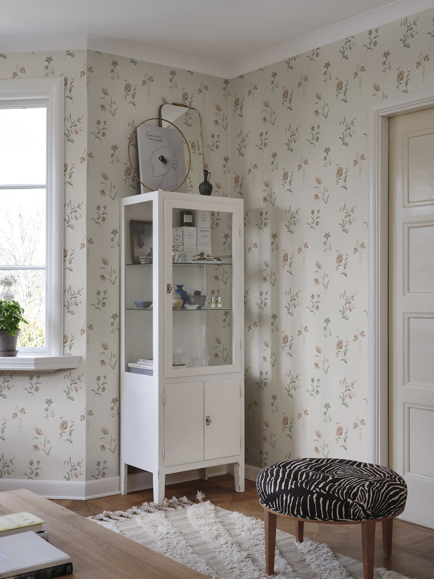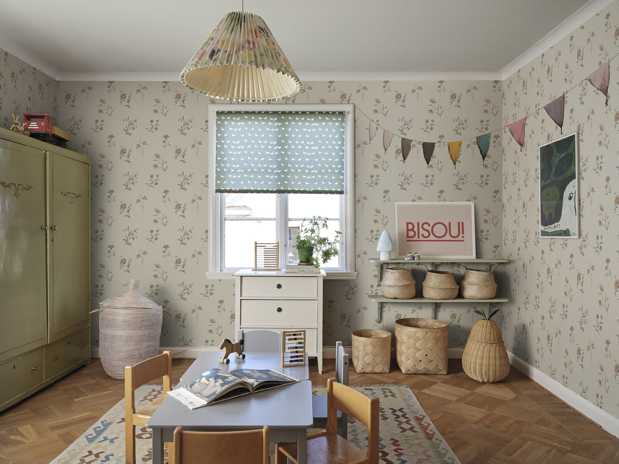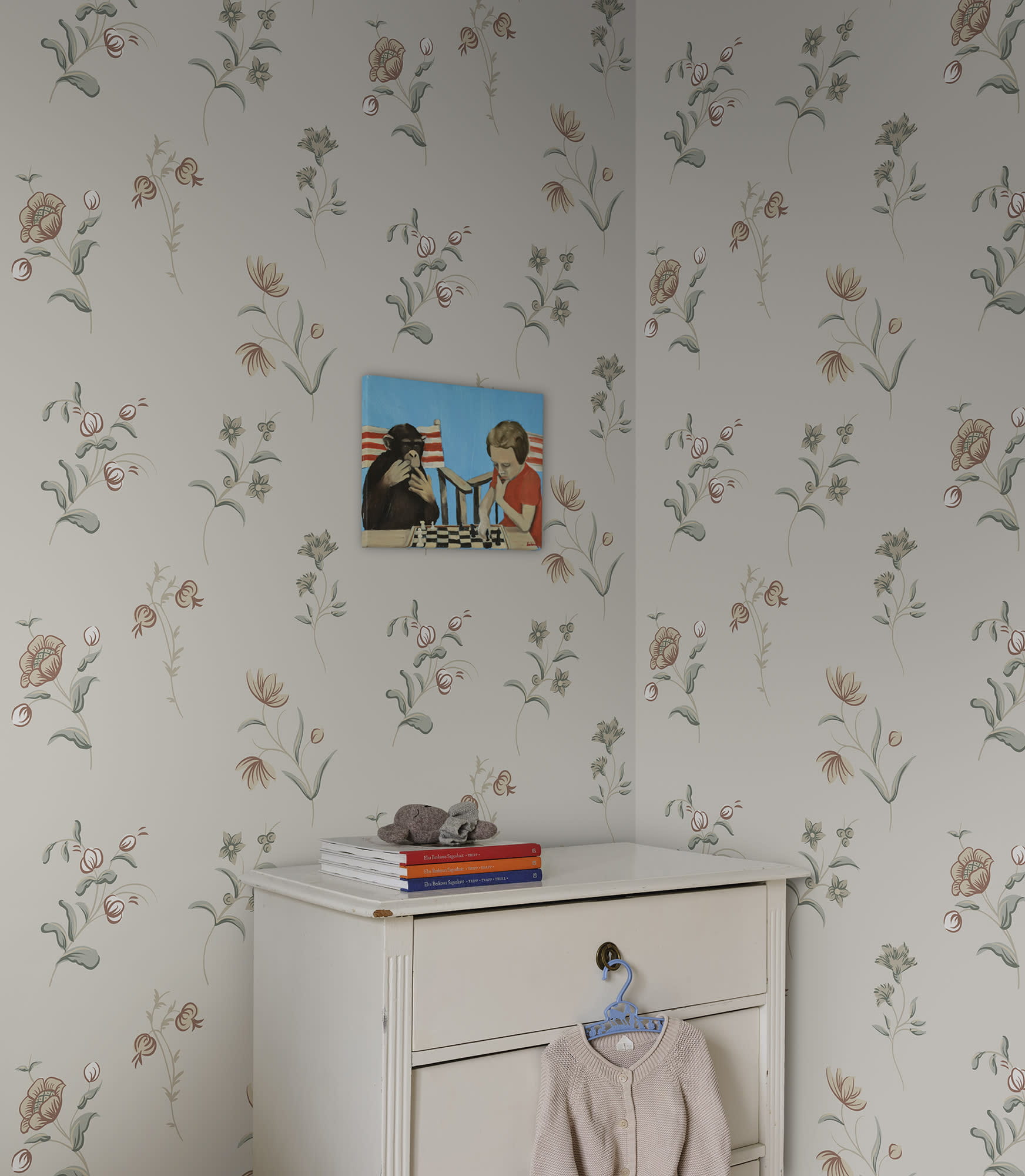 Ekskluzywna tapeta ścienna z kolekcji "Tidlosa", producenta oklein ściennych Sandberg. Projekt Hanna" to delikatny, kwiatowy motyw, który nawiązuje do szwedzkiej sztuki ludowej i malarstwa dekoracyjnego z XVIII wieku. Odważne pociągnięcia pędzla i harmonijna kolorystyka tworzą autentyczne wrażenie kwiatów malowanych na ścianie. Kompozycja w pastelowych odcieniach, takich jak beż, brąz, szaro-beż i chłodna zieleń, wkomponowanych w tło w odcieniu złamanej, kremowej bieli. Wykończenie tapety jest matowe a jej struktura niemal idealnie gładka w dotyku, pod palcami można wyczuć gdzieniegdzie wytłoczone elementy wzoru. Idealny przepis na stworzenie wyjątkowo przytulnej aranżacji salonu, jadalni, sypialni, przedpokoju, biura, pokoju młodzieżowego a nawet pokoju dziecięcego. Subtelny motyw będzie stylowym dopełnieniem zarówno klasycznej, jak i nowoczesnej aranżacji. Pięknie będzie prezentować się jako samodzielna dekoracja całego pomieszczenia, jak i w stylowym zestawieniu z innymi tapetami z kolekcji. Tapeta flizelinowa, charakteryzująca się dobrą odpornością na zmywanie, dzięki czemu jej powierzchnię można bardzo delikatnie przecierać ściereczką.