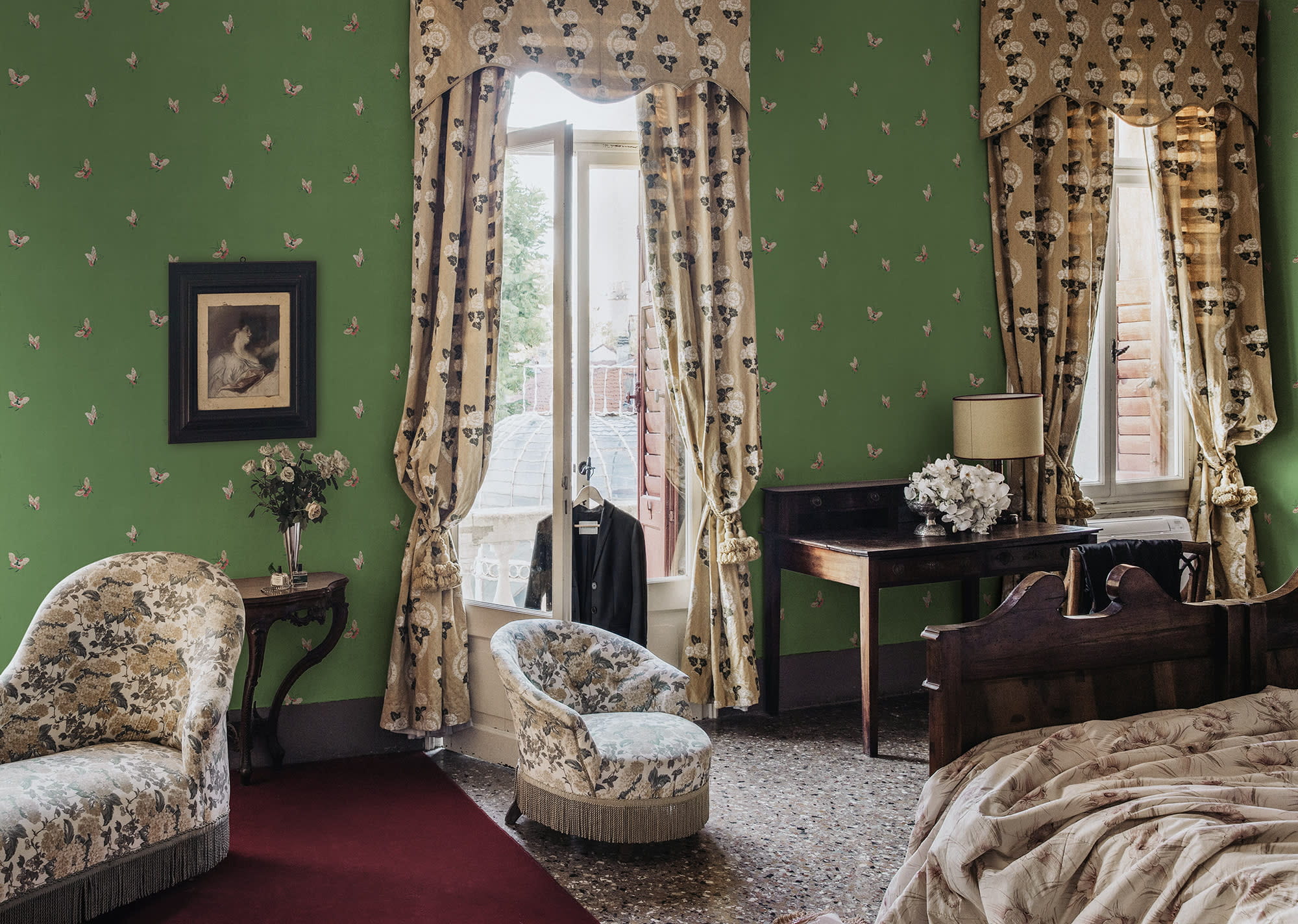 Tapeta S10449 Chinoiserie Garden - Butterflies, Green