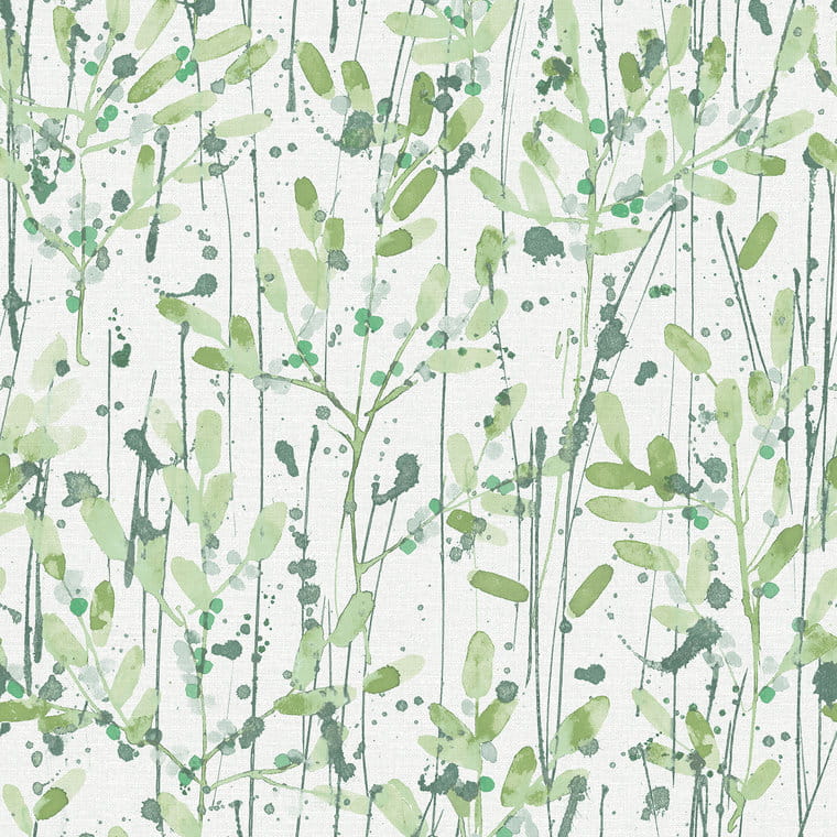 Ekskluzywna tapeta ścienna z kolekcji " Scott Living II By Drew & Jonathan", producenta Fine Decor. Nowoczesna tapeta z fantazyjnym, malowanym akwarelą motywem przywołującym na myśl drobne listki i gałązki. Kompozycja w odcieniach zieleni, na białym, kredowym tle. Delikatnie tłoczona, chropowata w dotyku struktura tapety przypomina płótno, wykończenie jest matowe. Aby aranżacja wnętrza nabrała spójności i modnego charakteru, warto zastosować tapetę jako dekorację jednej, czy też dwóch ścian i skompletować ją z tapetą o numerze FD26235. Podłoże tapety winylowe na flizelinie, zmywalne w dobrym stopniu.